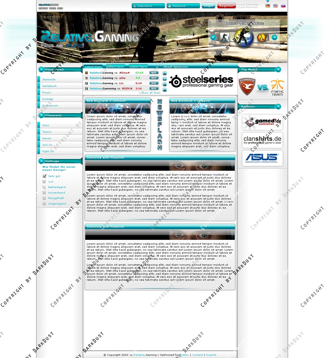Du hast noch keinen Account auf ClanDesigns.de? Dann kannst du dich hier kostenlos registrieren!