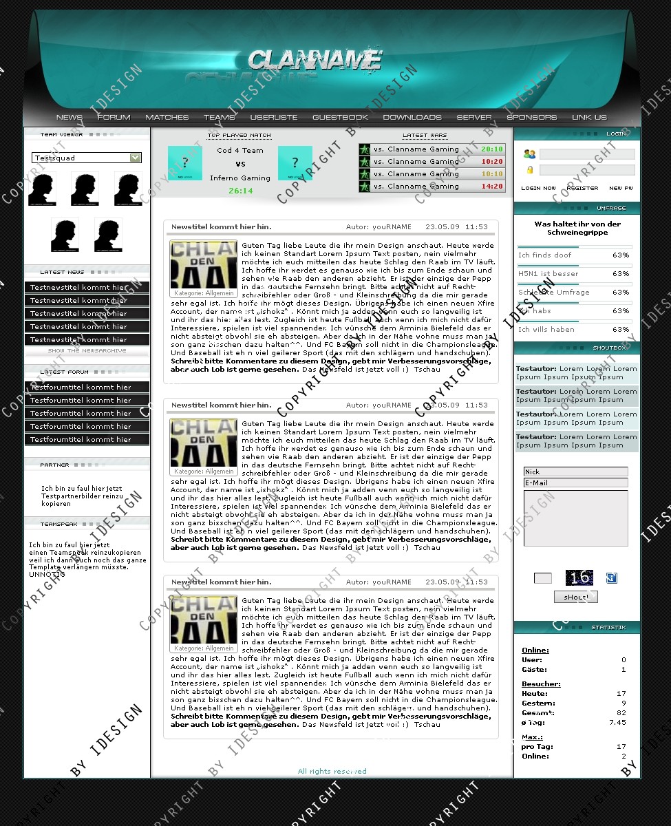 Du hast noch keinen Account auf ClanDesigns.de? Dann kannst du dich hier kostenlos registrieren!