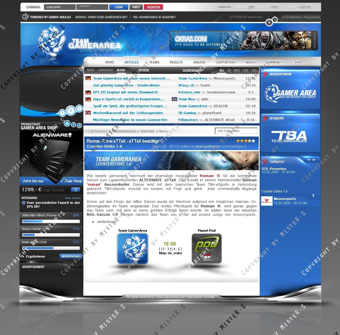 Newspics, Squadpics und Playerrahmen, sowie Logo und Esl Logo können ebenfalls erworben werden.