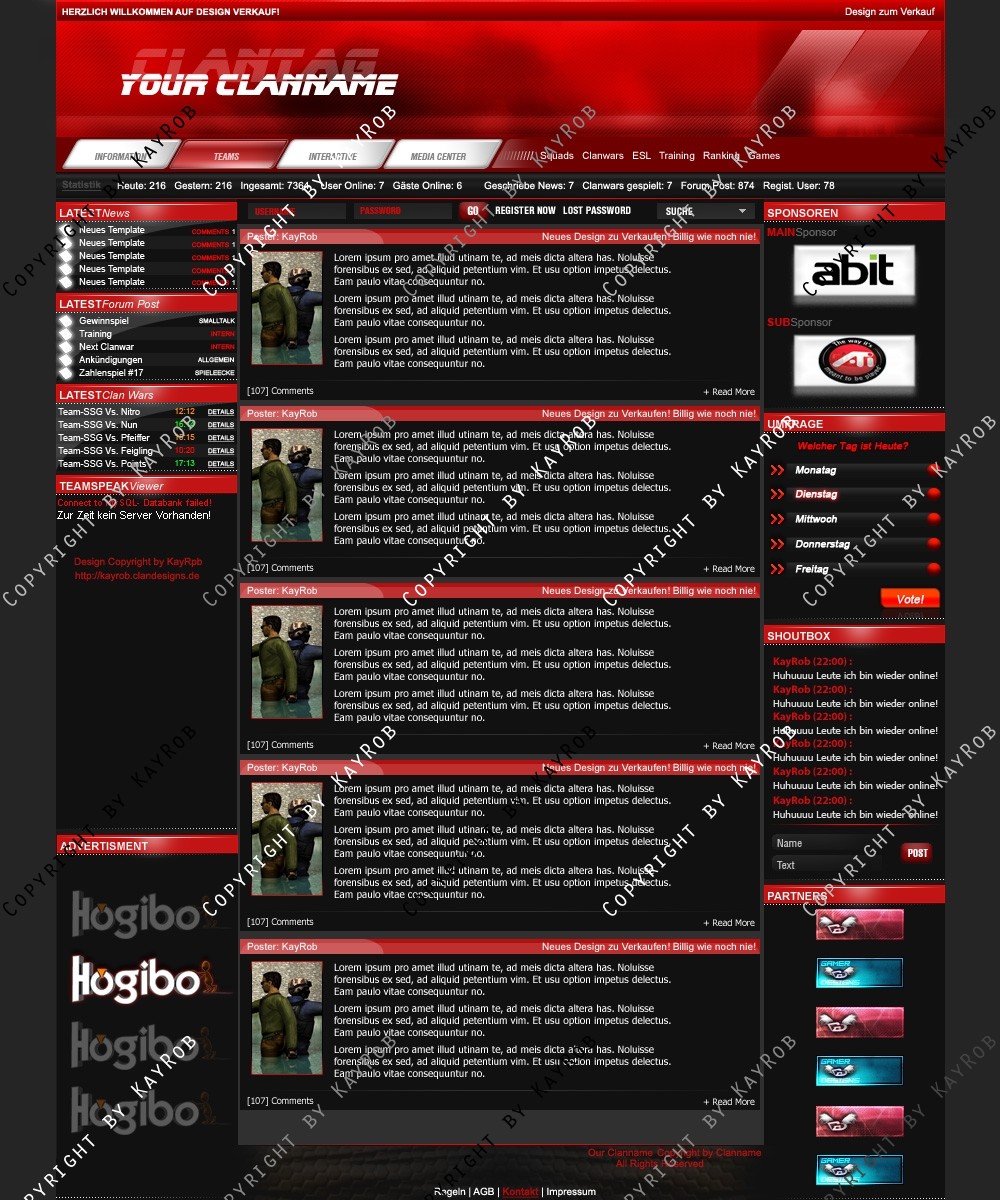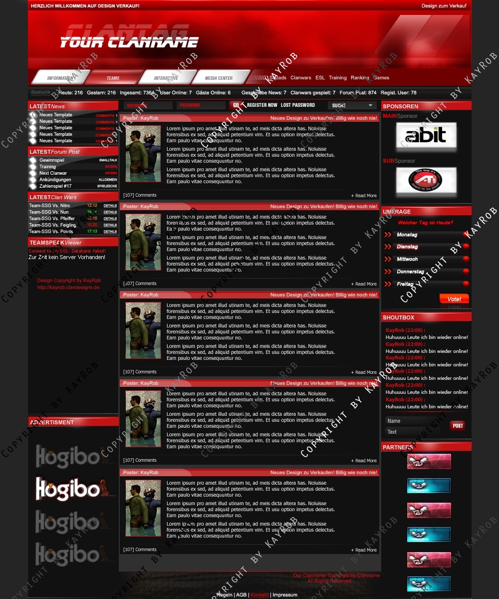 Dieses Clandesign darf OHNE genehmigung von mir Robert Erdmann nicht zum Free Download auf anderen Webadressen angeboten werde. Das weiter verschicken von Design.psd ist auch UNTERSAGT. Sollte es dies der Fall sein, werde ich Rechtliche Schritte einleiten und dies Ahnden!