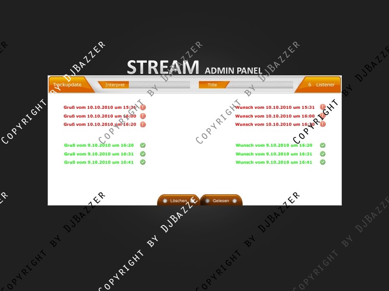 Einmal die Admin Seite, die die Moderatoren/Deejays oder Generell Admins einsehen können, wo Sie die Gruß und Wunschbox auslesen können und Tracklist schreiben können, auch da, gibts eine Listener Anzeige.