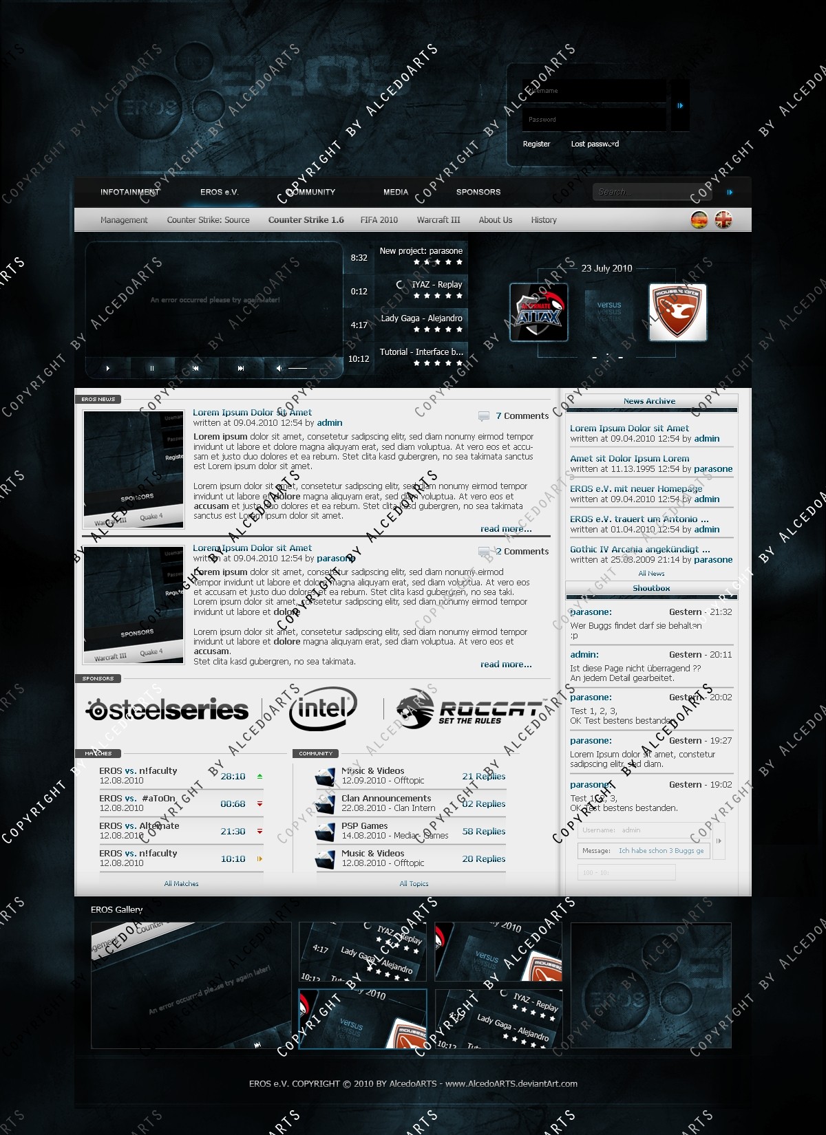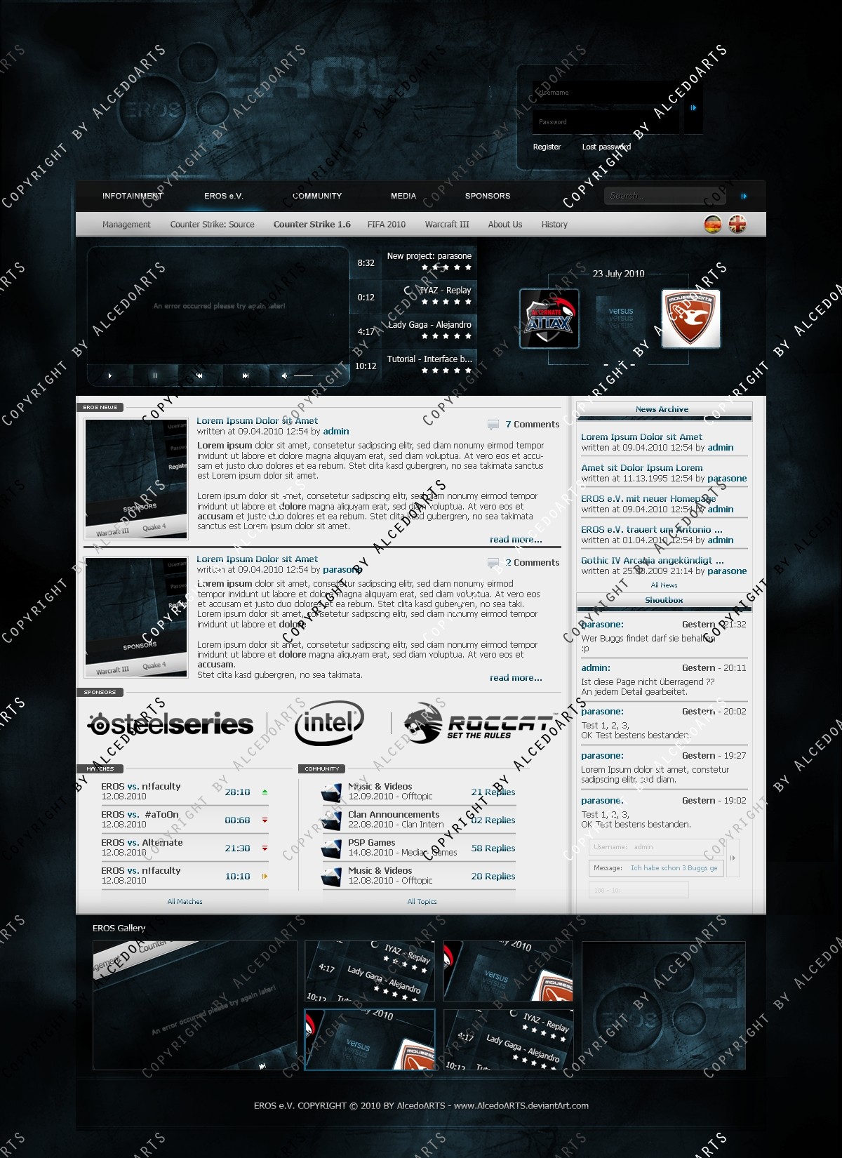 Ich verkaufe folgendes Clan Layout mehrmals oder exklusiv zu einem für mich angemessenen Preis-/Leistungsverhältnis! Verkauft werden lediglich die .psd-Dateien des jeweiligen Templates, das bedeutet also, dass kein Code bzw. Slicing im Preis inbegriffen ist.