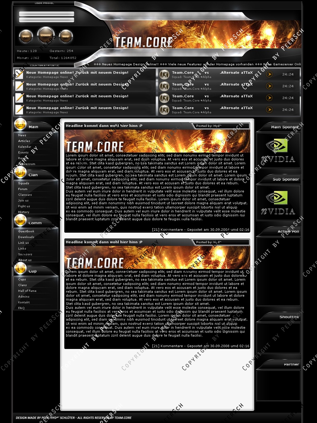 Was Sie hier kaufen ist lediglich die PSD Datei, gerne kann ich es Ihnen gegen einen Aufpreis von 13€ an ein CMS Anpassen, zur Auswahl stehen hierbei: webSPELL, Clansphere, Teklab, Devilz und andere CMS auf Anfrage ohne Aufpreis.