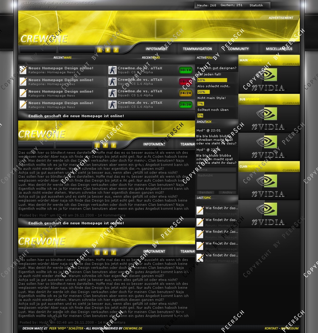 Was Sie hier kaufen ist lediglich die PSD Datei, gerne kann ich es Ihnen gegen einen Aufpreis von 13€ an ein CMS Anpassen, zur Auswahl stehen hierbei: webSPELL, Clansphere, Teklab, Devilz und andere CMS auf Anfrage ohne Aufpreis.