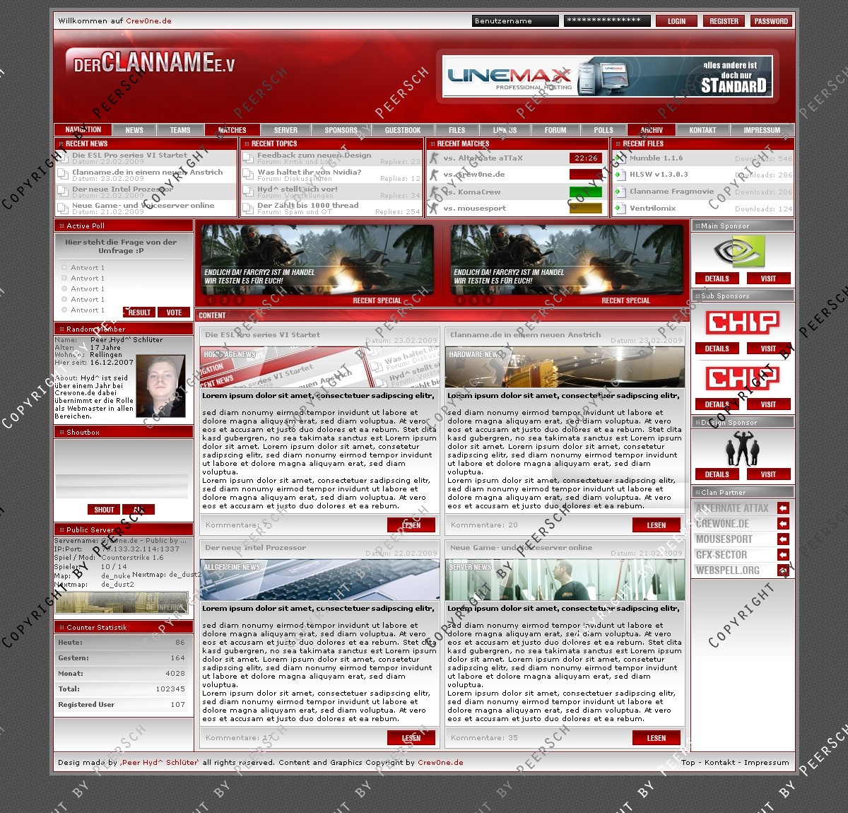Was Sie hier kaufen ist lediglich die PSD Datei, gerne kann ich es Ihnen gegen einen Aufpreis von 13€ an ein CMS Anpassen, zur Auswahl stehen hierbei: webSPELL, Clansphere, Teklab, Devilz und andere CMS auf Anfrage ohne Aufpreis.