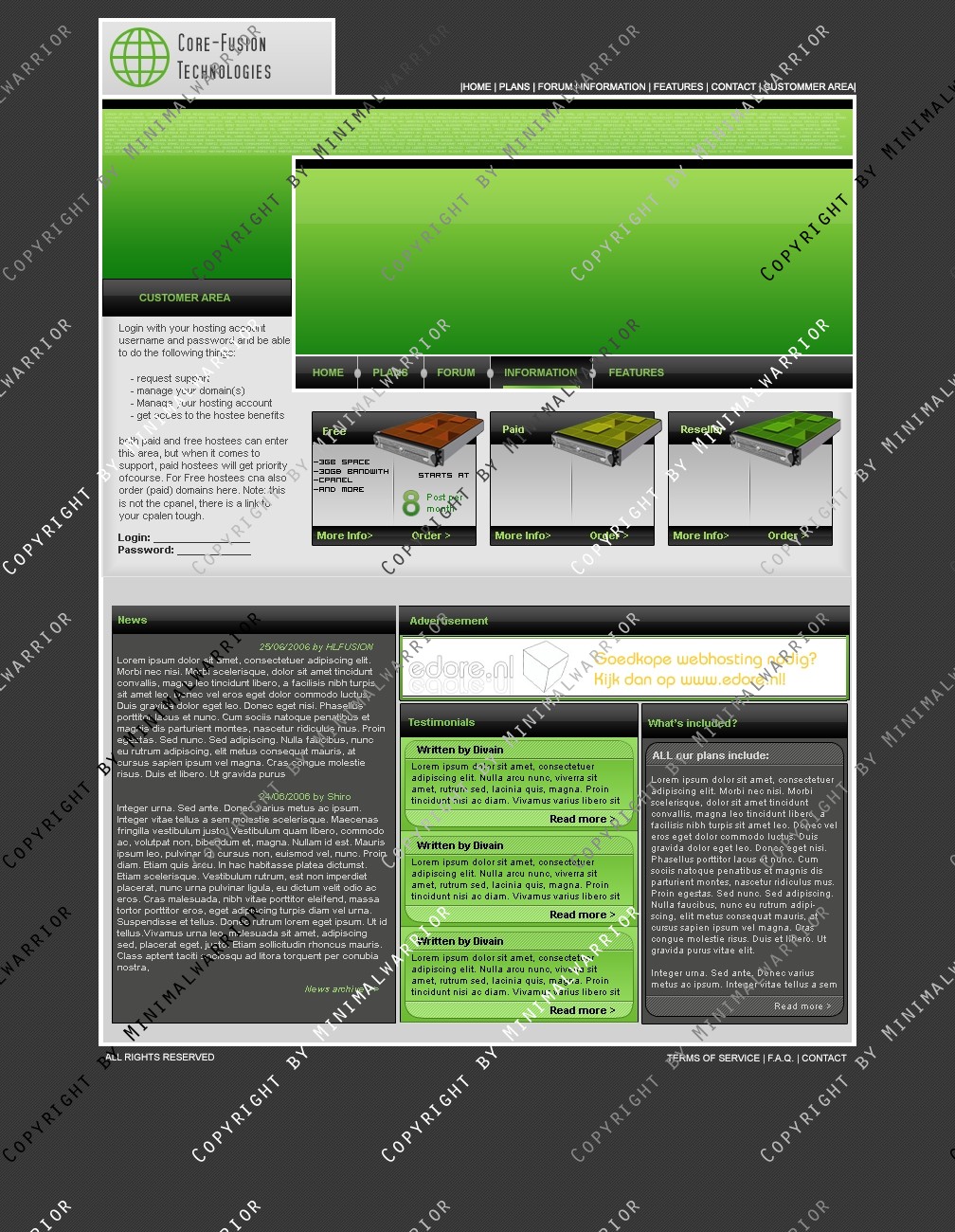 Ich verkaufe folgendes Hosting Layout mehrmals oder exklusiv zu einem für mich angemessenen Preis-/Leistungsverhältnis! Verkauft werden lediglich die .psd-Dateien des jeweiligen Templates, das bedeutet also, dass kein Code bzw. Slicing im Preis inbegriffen ist.