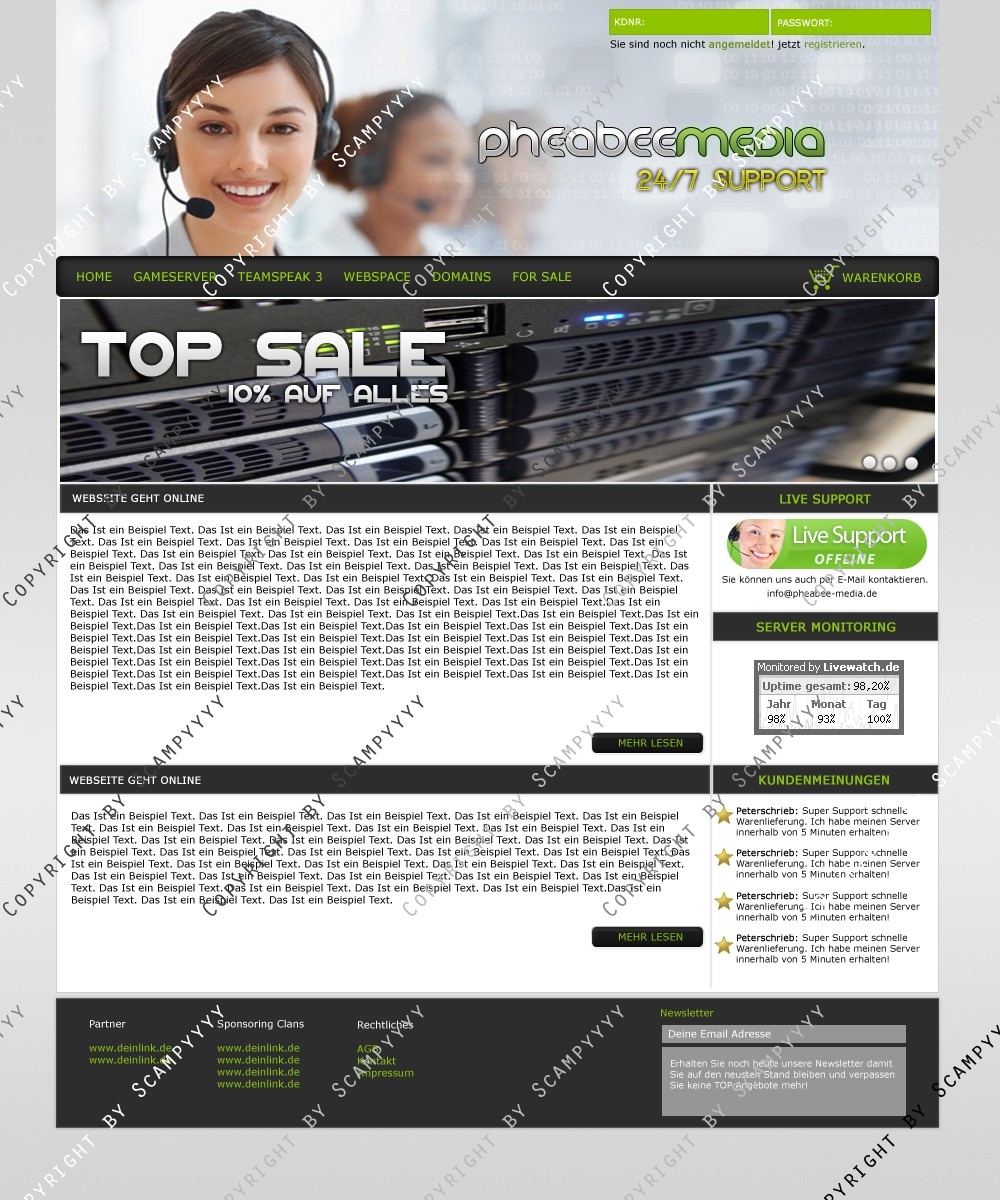 Hinweis: Hierbei handelt es sich nur um das Design, eine Anpassung an ein CMS-System ist nicht im Preis enthalten!