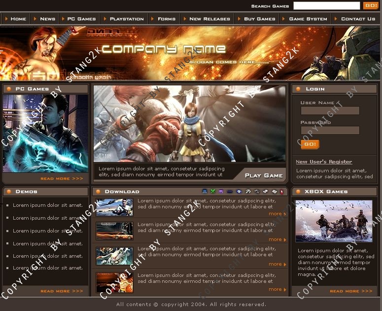 Dieses Design ist optimal für Gamercommunitys oder Clans. Das Design ist in braun und kann danke der mitgelieferten PSD und der Schriftarten nach eigenen Wünschen verändert werden.