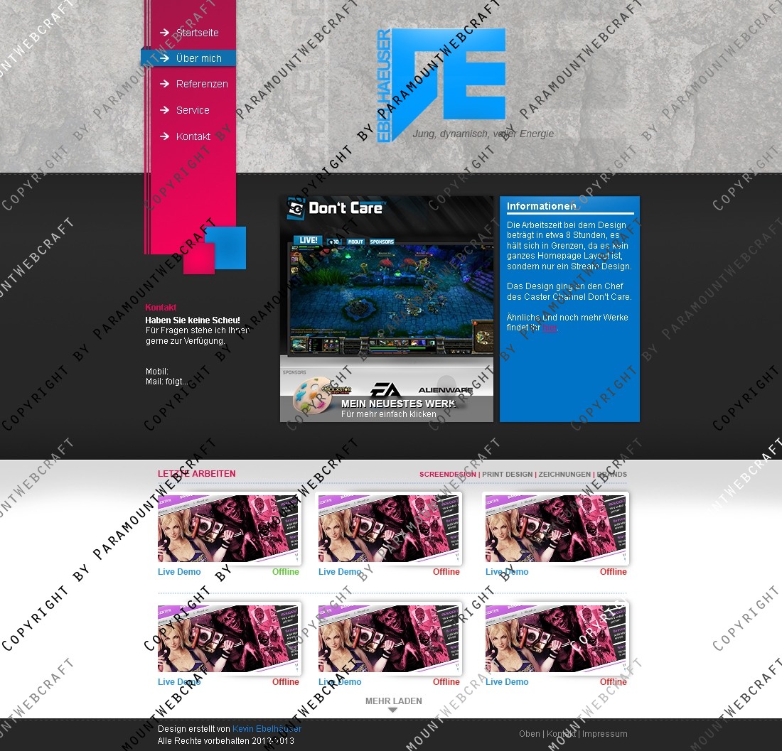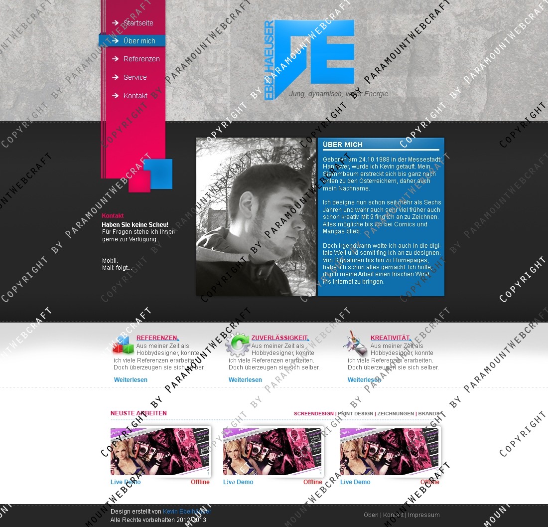 In diesem Packet erhalten Sie eine Photoshop Datei (.psd) mit einem Portfolio das vielseitig einsetzbar ist. Gedacht ist es für Mediengestalter aller Art die ein Portfolio zum Einstieg brauchen. Das Portfolio enthält auch Unterseiten wie z.B. Über Mich und Referenzen.