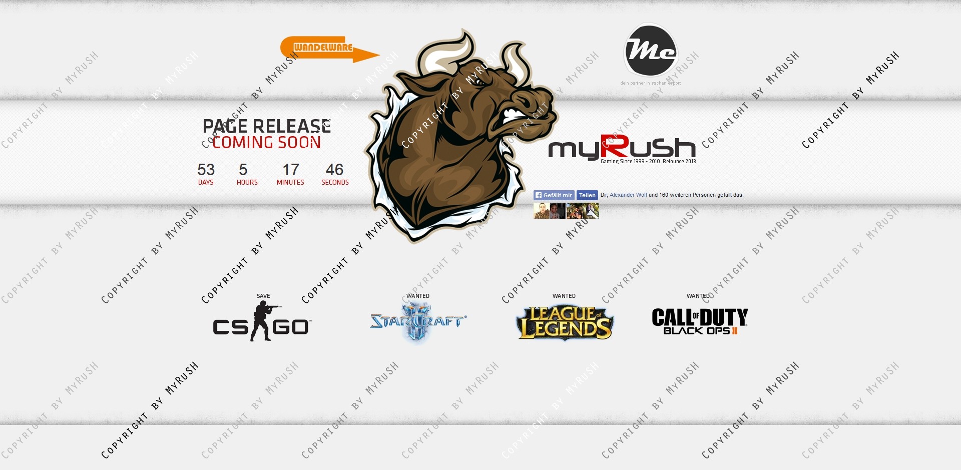 ich Biete Ihnen hier eine Countdown Page an die sie z.B zum Release zu einer Homepage mit einem Timer versehen können. Diese Enterseite bzw Countdown Seite gibt es so wie hier nur 1x und wurde für myrush Designt nun teilen wir es oder Bieten es Exklusiv an!