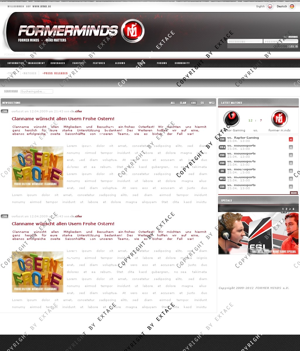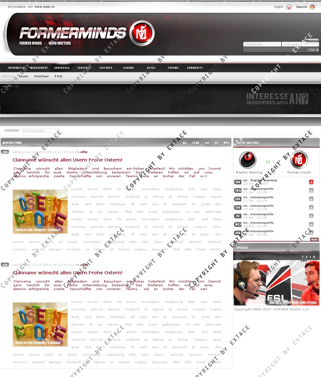 • Anpassung der Homeapage an ein CMS (webSPELL o.ä.) möglich (Zusatzkosten je nach Umfang - nur nach Absrpache)