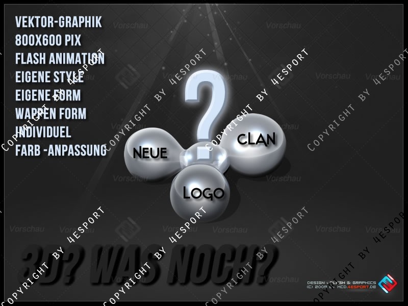 Wir redesignen eure EIGENE ALTEN CLAN LOGOS, ODER ERSTELLEN EINE NEUES INDIVIDUELLE CLAN LOGO , als Vektor wenn unter Zusatzleitungen mit Bestellt wurde, und in 3D (nie wieder verpixelt, unscharf) auf Wunsch auch Animiert in FLASH (Aufpreis)