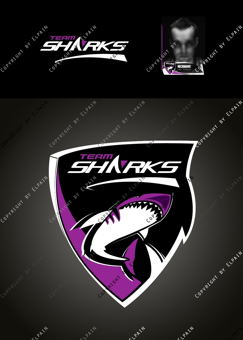 - Die .PSD Datei beinhaltet ALLE Ebenen als Formen, den original Team-Shark Schriftzug und eine kinderleichte Vorlage für den eigenen Clannamen. (Schriftarten liegen bei. S.o.)