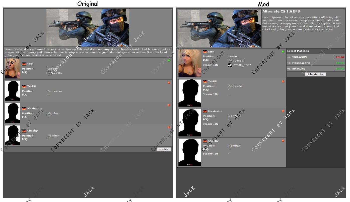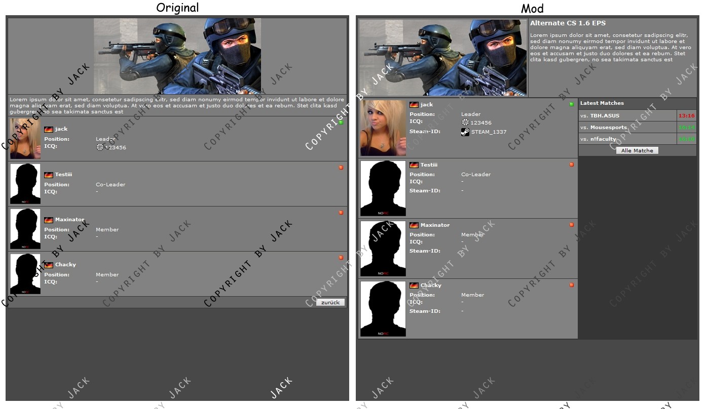 Diese Modifikation verändert die Standard Squadansicht in einigen Punkten.
