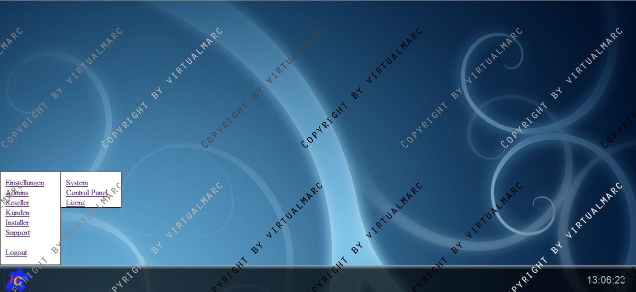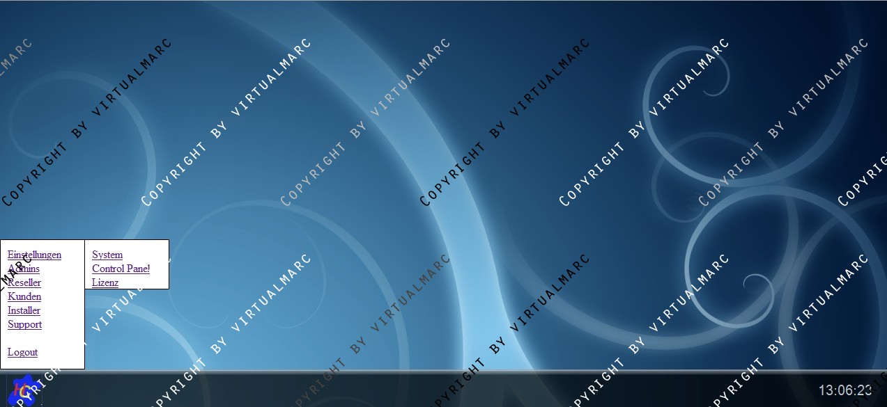 Unten befindet sich eine Menüleiste mit einer Uhr und einem PullUp Menü.