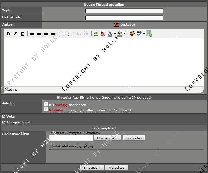 + ...können direkt Bilder im Forum während des Thread oder Post erstellens uploaden