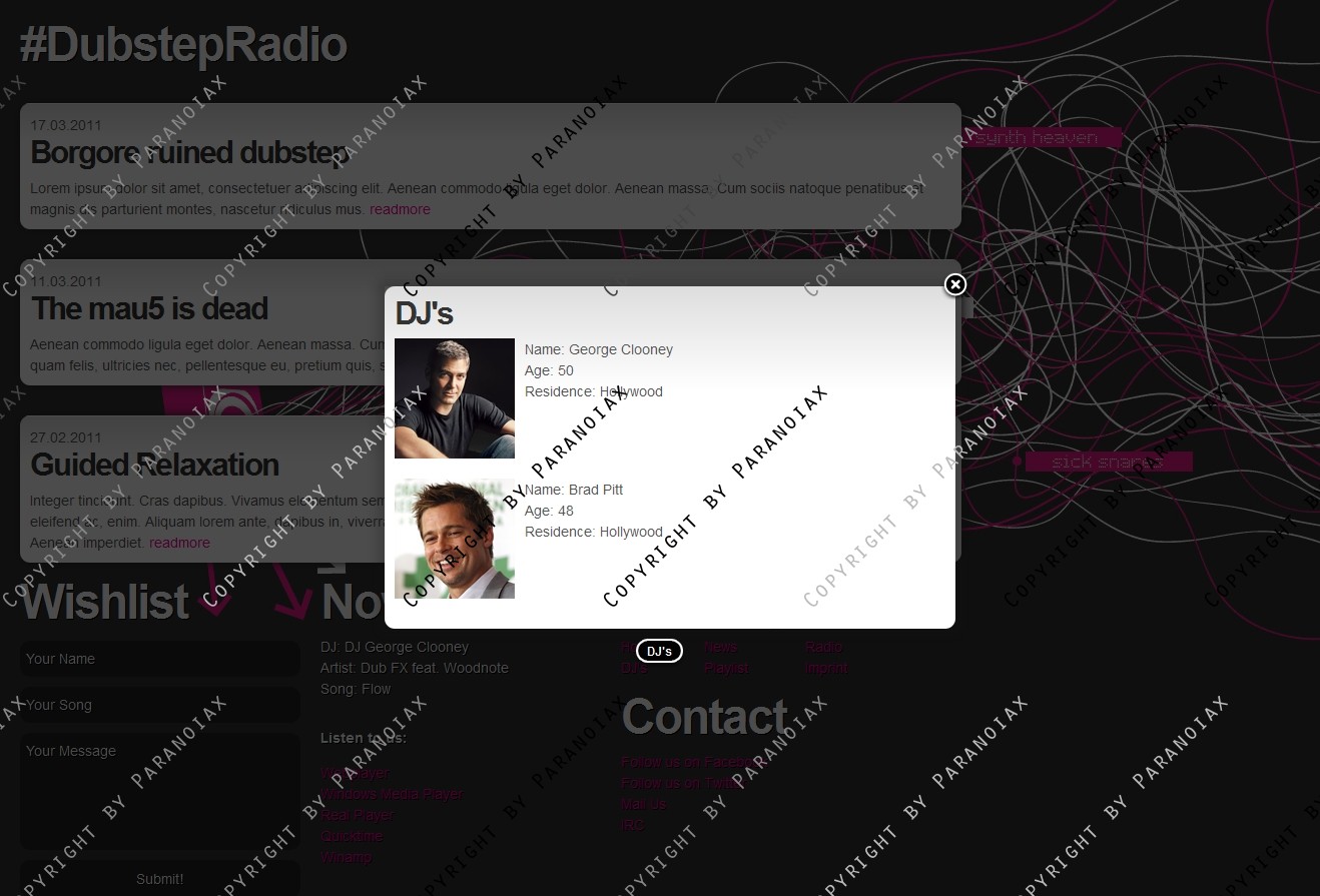 • Ajax Call für Radio, Dj's, Playlist und Imprint