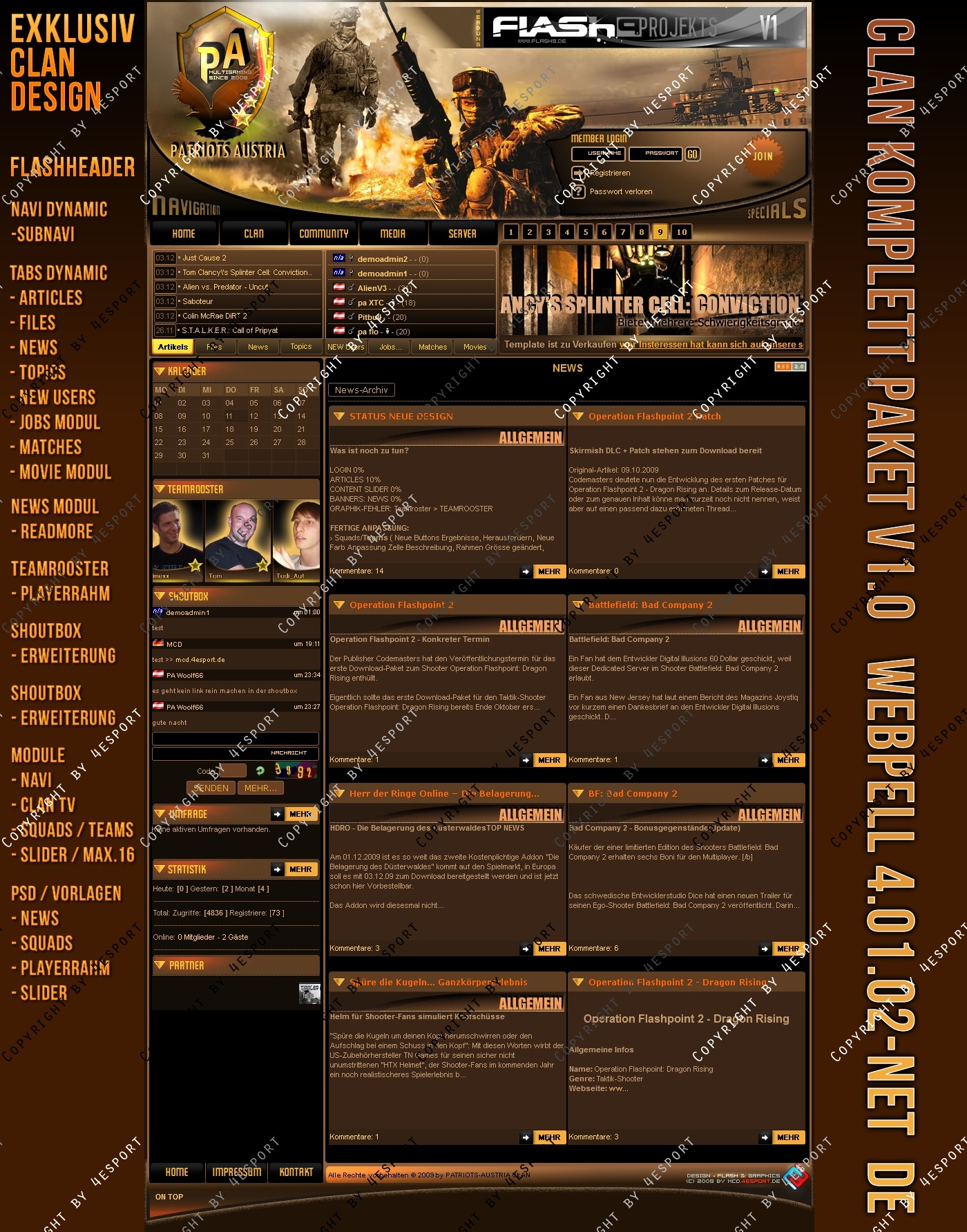 Design PSD Inkl. : News-Vorlage, Squads-Teams-Vorlage, Slider-vorlage, PA-Logo, Header- Links (hinter Logo der graphik)