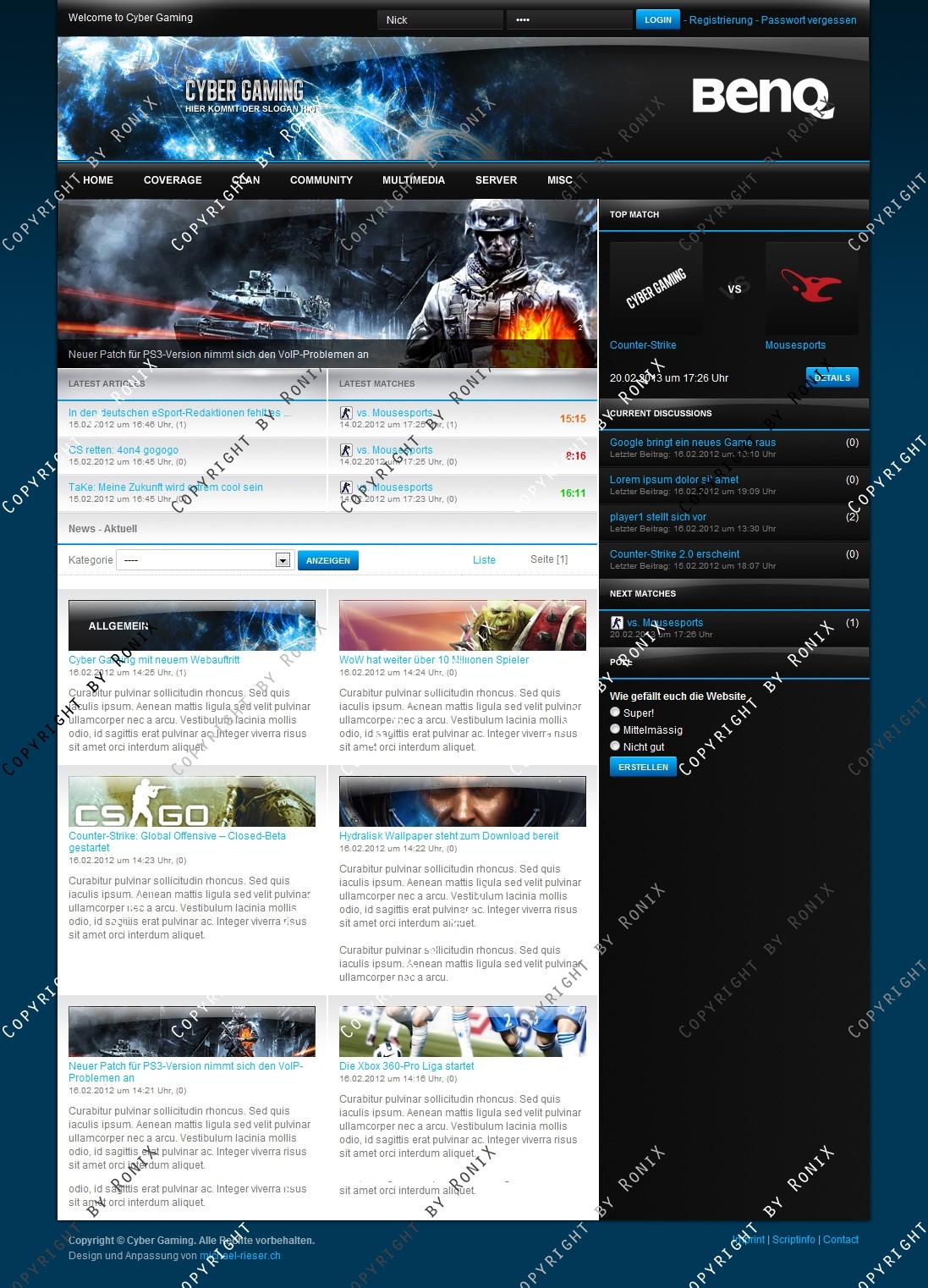 • Photoshop-Vorlagen für Coverages, Header, News, Sponsoren und Top-Match-Logos