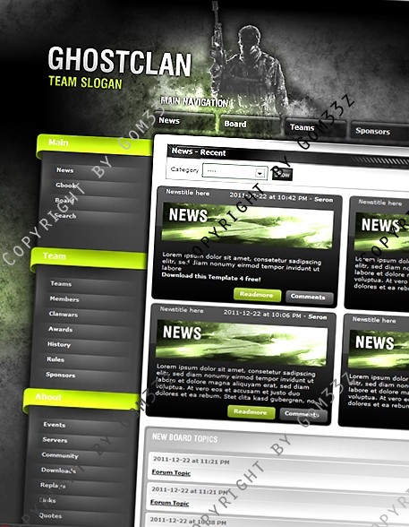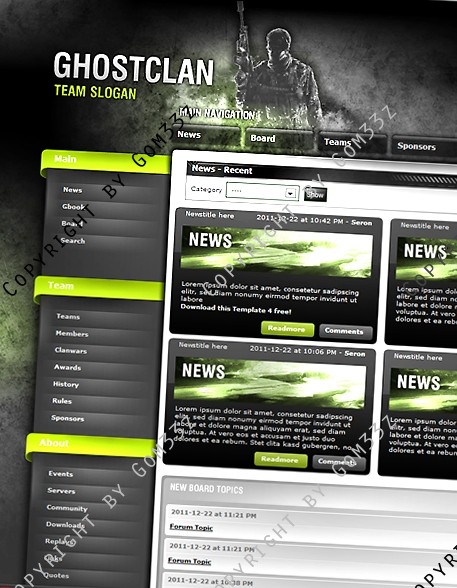 Wir verkaufen ein sehr schönes Ghost Clan Premium Template Design angepasst an die aktuelle ClanSphere Version: 2011.3