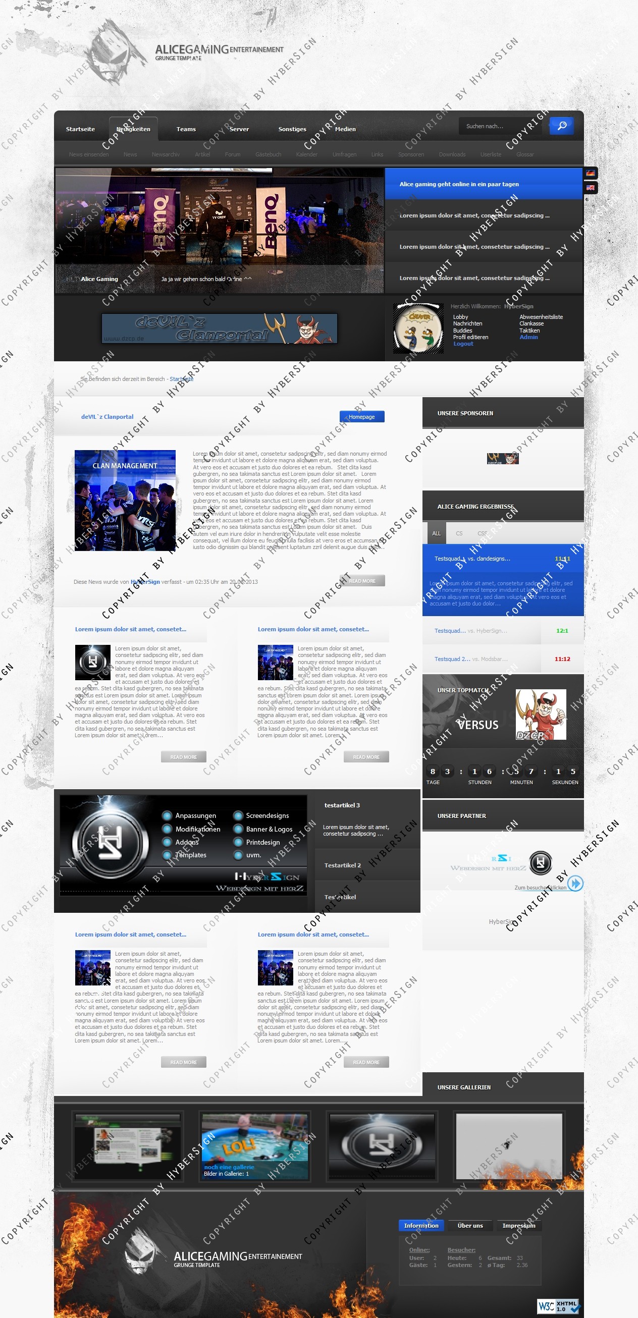 • PSD Schablonen für Clanlogo und Footlogo, Artikel und Newsbilder, Slideshow, Sponsoren, und Partnerbanner und Topmatch