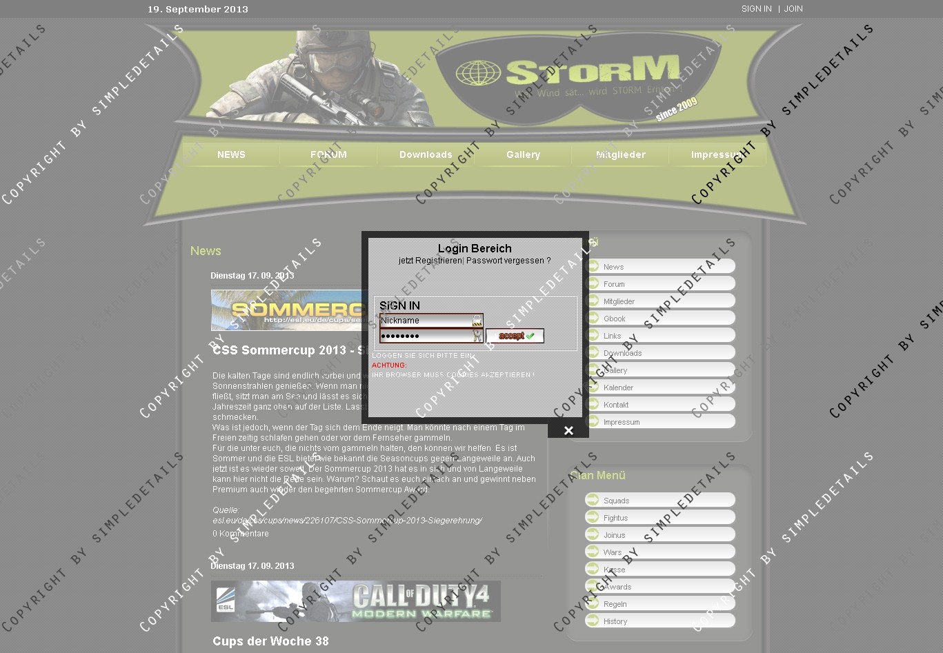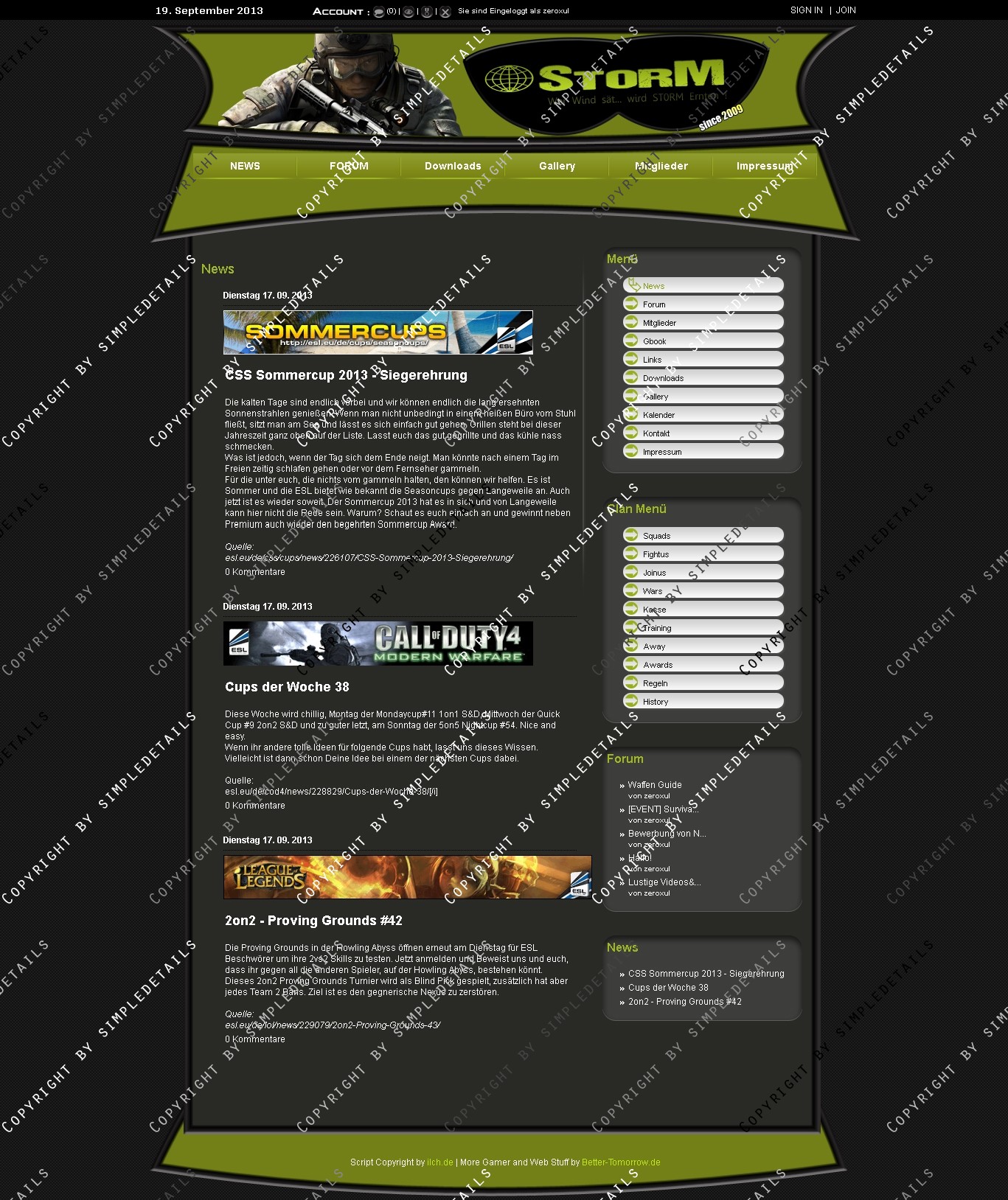 Im Header ist ein Clan-Logo eingebunden, das auch in der .PSD Datei vorhanden ist, und frei angepasst werden kann.