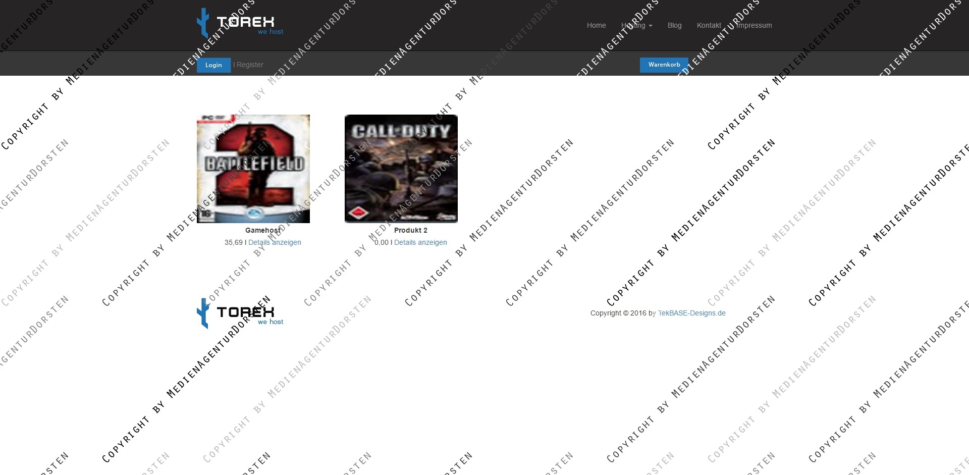 - Unterseiten: Blog, Category, Impressum, Kontaktformular, Product Details, Warenkorb